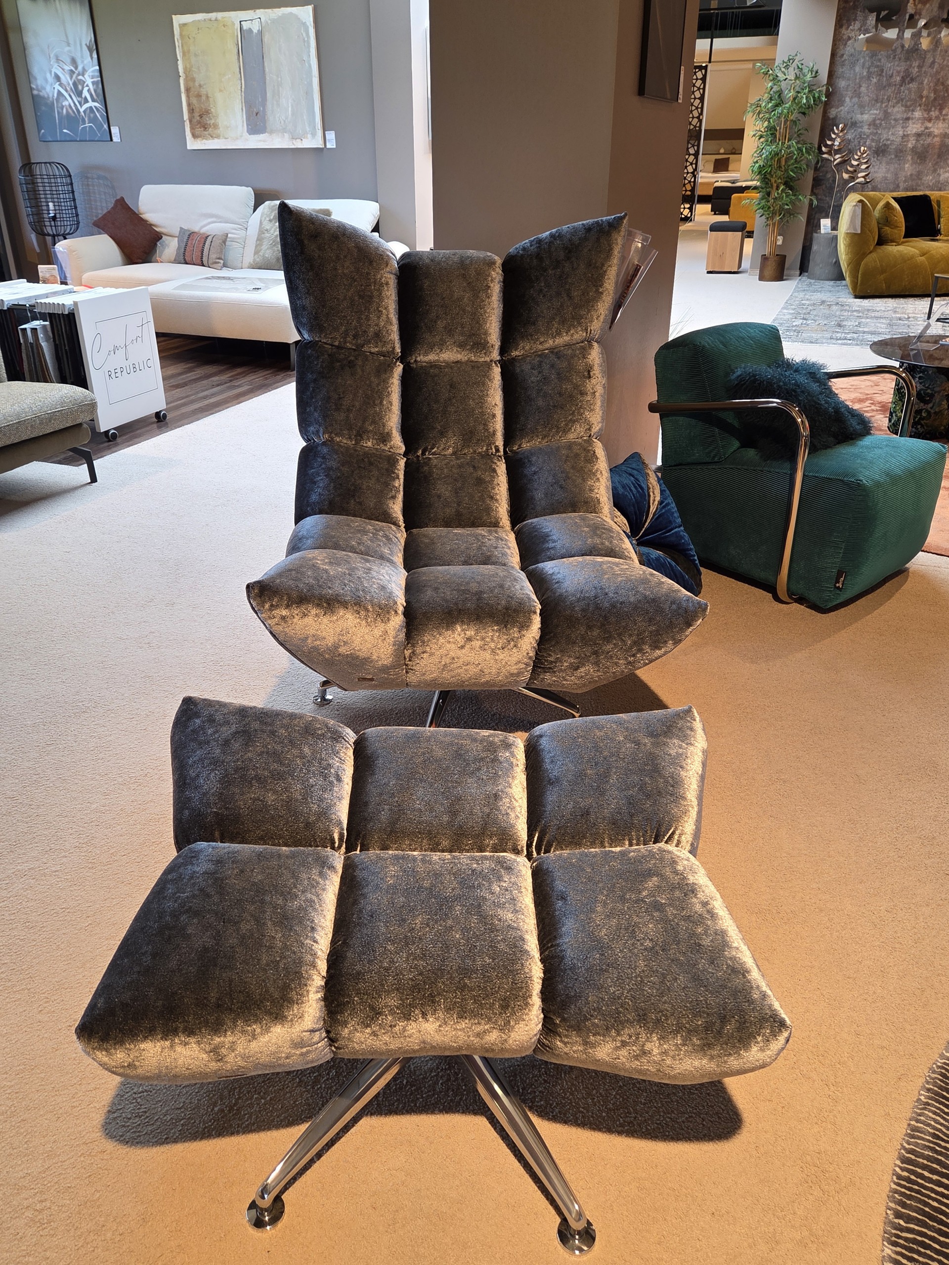 Bretz Dreh-Wipp-sessel Hangout mit Hocker