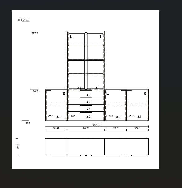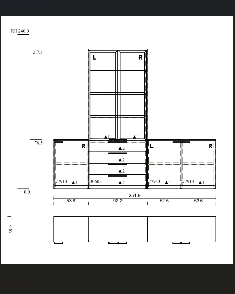 Maße: Breite: ca. 251,9 cm/ Tiefe: ca. 39,9 cm